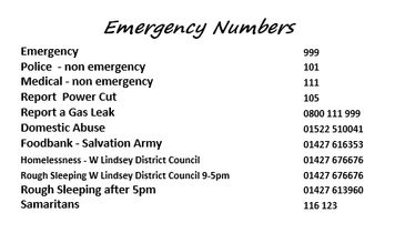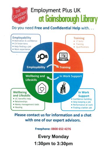 The Salvation Army Foodbank is open from 10am - 1pm on Mondays and Fridays. Tel 01427 616353