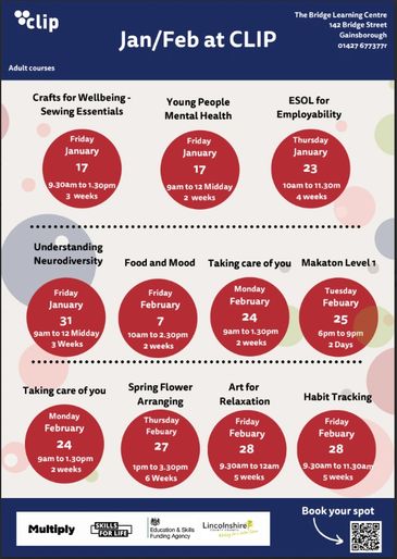 To find out more visit www.cliplearning.com or FB CLIP Gainsborough for details of the latest courses or tel 01427 677377. CLIP are based at The Bridge Learning Centre, 142 Bridge Street, Gainsborough DN21 1LP.