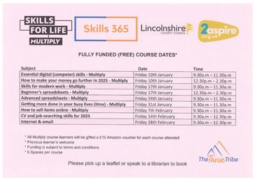 The next round of courses to be held at Gainsborough library begin in January 2025 have just been announced. For more details visit https://newskills365.com or phone 01522 275033, email hello@newskills365.com